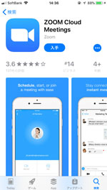 候補が複数表示されますが、「ZOOM Cloud Meetings」というアプリが該当のアプリです。2.[入手]をタップします。